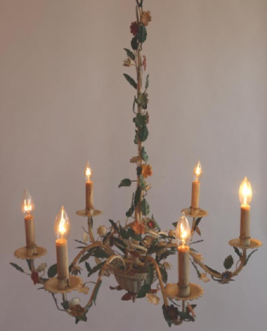 Italian Tole Chandelier With Flowers 1920s Ref Cc24